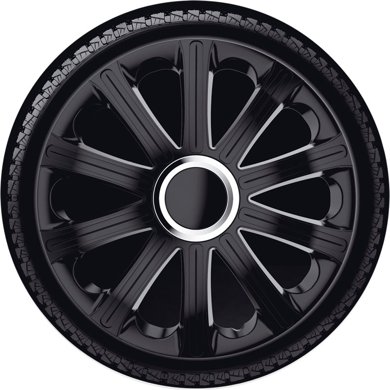 4-Delige J-Tec Wieldoppenset Modena 16-inch zwart + chroom ring