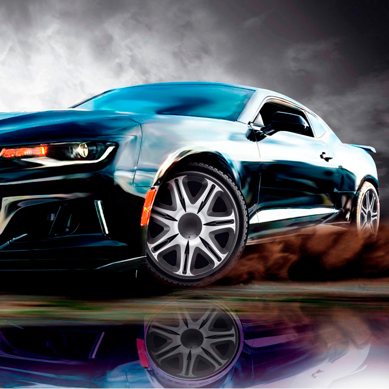 4-Delige J-Tec Wieldoppenset Nascar 16-inch zilver/zwart