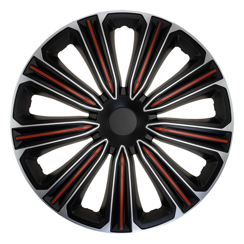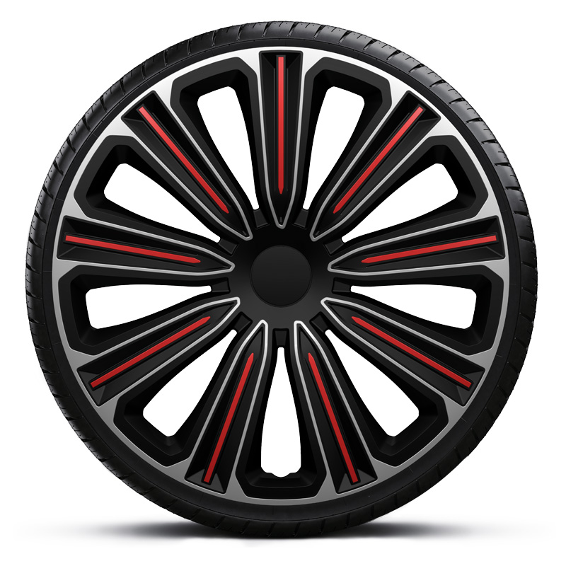 4-Delige J-Tec Wieldoppenset Rosso 14-inch zilver/zwart/rood