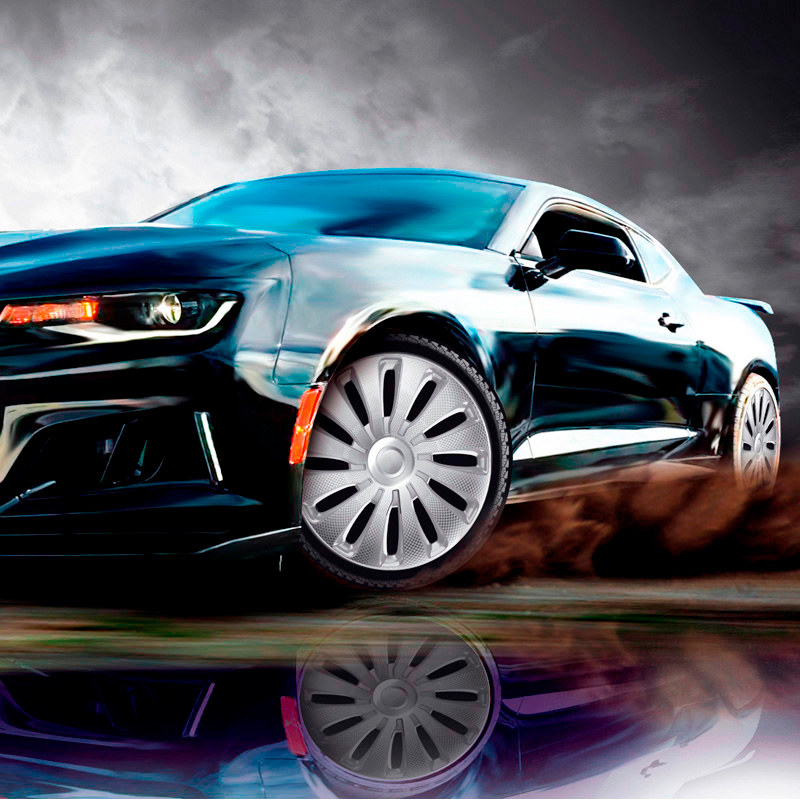 4-Delige J-Tec Wieldoppenset Sepang 13-inch zilver/carbon-look