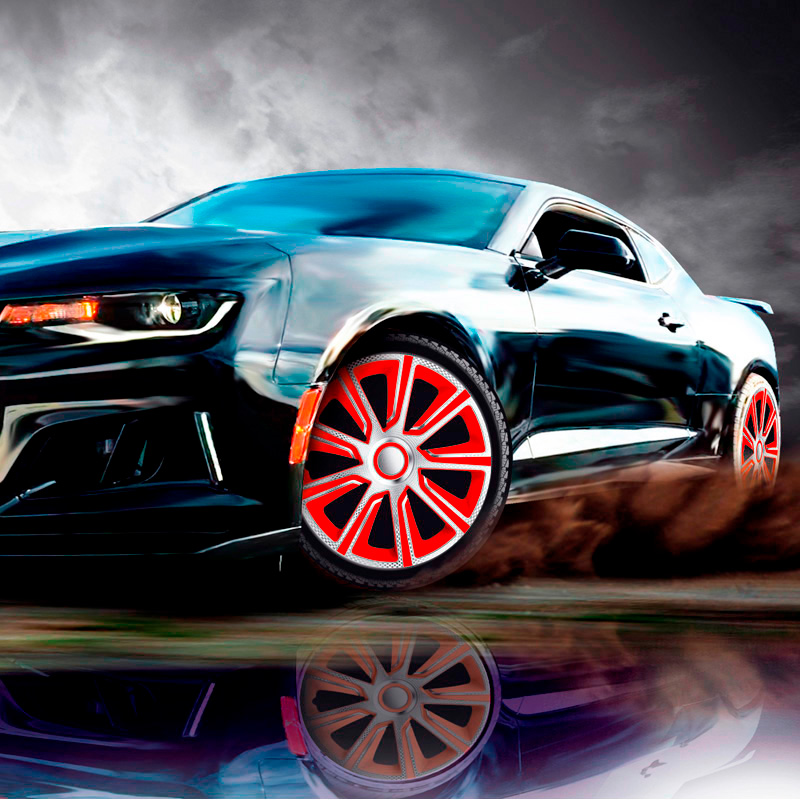 4-Delige J-Tec Wieldoppenset Veron 14-inch zilver/rood/carbon-look