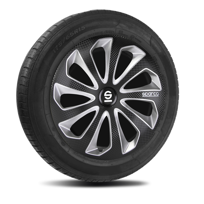 4-Delige Sparco Wieldoppenset Sicilia 14-inch zwart/zilver/carbon