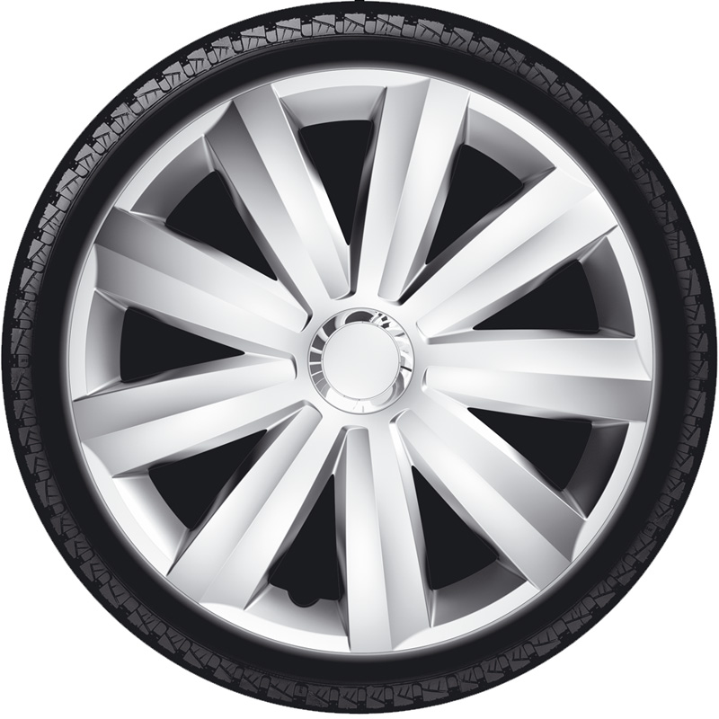 4-Delige Wieldoppenset Venture Pro 14-inch zilver + chroom ring (Nylon)
