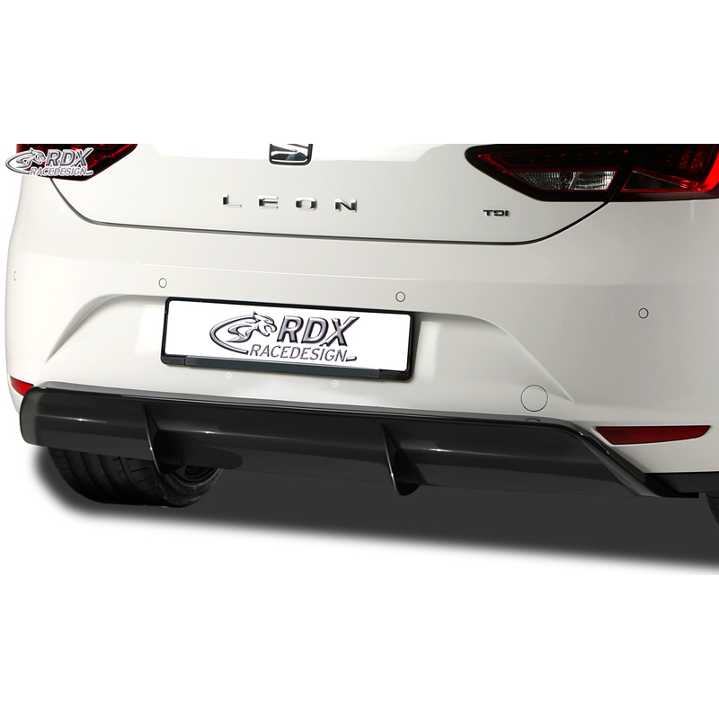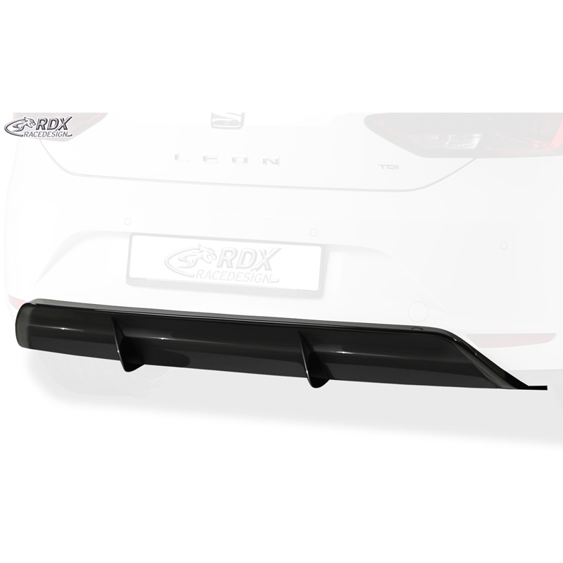 RDX Racedesign Achterskirt 'Diffusor' passend voor Seat Leon 5F SC/5-deurs 2013-2017 excl. ST/FR/Cupra. Gemaakt van hoogwaardig slagvast ABS plastic in hoogglans zwart, dus behoeft niet in kleur gespoten te worden.