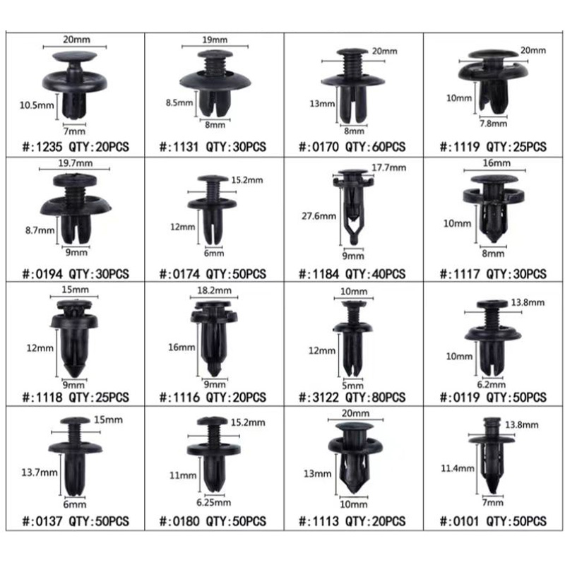 Handige box met 16 gangbare kunststof clips voor Automotive toepassingen.