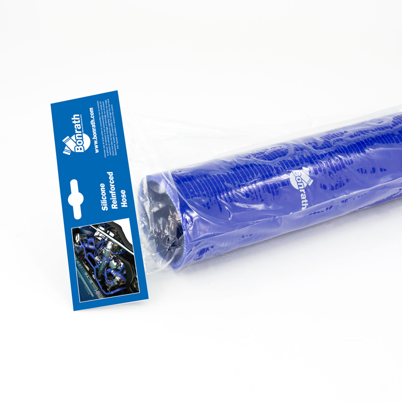 Universele versterkte silicone slangen van Bonrath. Jouw merk als het aan komt op performance en looks! De slangen zijn geschikt voor water en lucht transport. De maximale druk per diameter: Tot 25Ø mm = 5 Bar, 28-41Ø mm = 4 Bar, 45-60Ø mm = 3 Bar, 63-102Ø mm = 2 Bar. Maximaal 180 graden celcius. De slangen worden geleverd in de kleur blauw.