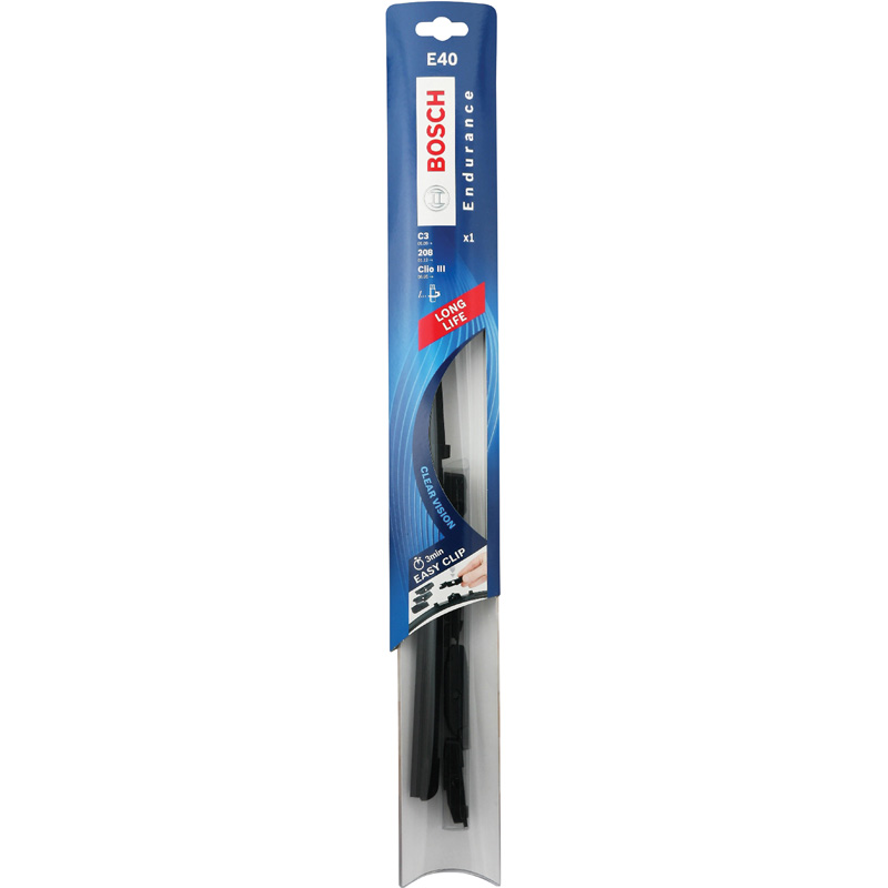 Goed zicht op de weg is een belangrijke veiligheidsfactor. Bosch ruitenwissers helpen u om zo veilig mogelijk te rijden. De Bosch ruitenwisser Endurance is 400mm lang en wordt per stuk verkocht. Bekijk de auto-applicatielijst onder het kopje 'Handleiding'