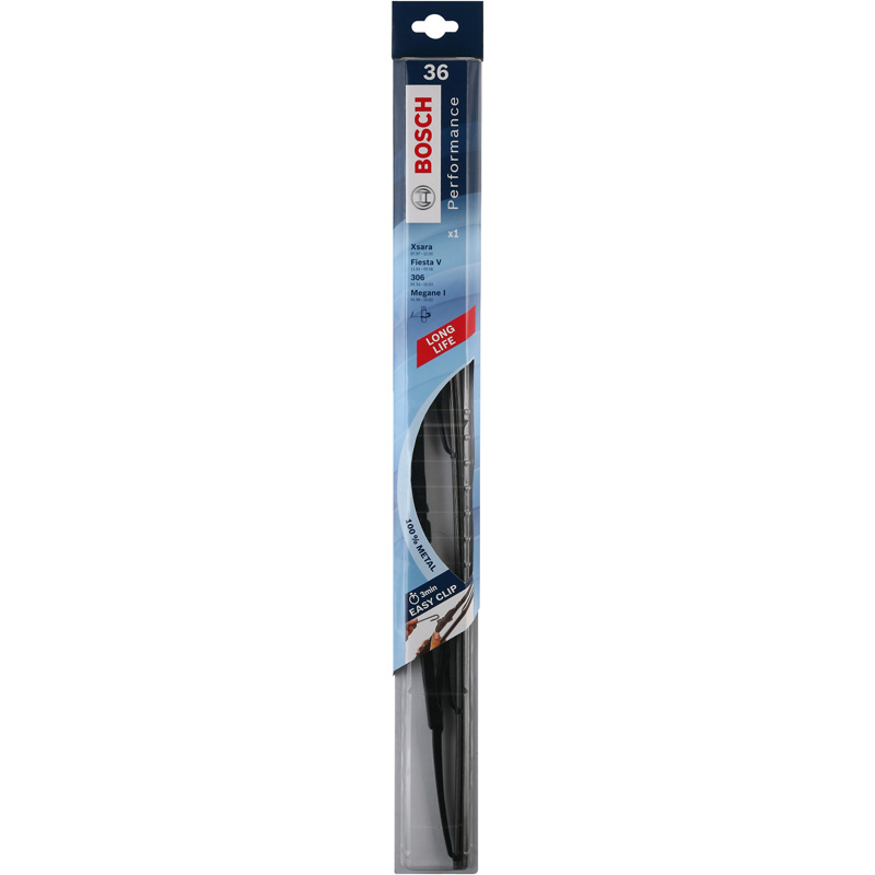 Het Bosch 36 ruitenwisserblad Performance 550mm is zeer betrouwbaar. De Performance ruitenwisser wordt gemaakt van twee soorten rubber. Deze combinatie, natuurrubber en synthetisch rubber, zorgt ervoor dat de wislip flexibel kan bewegen.