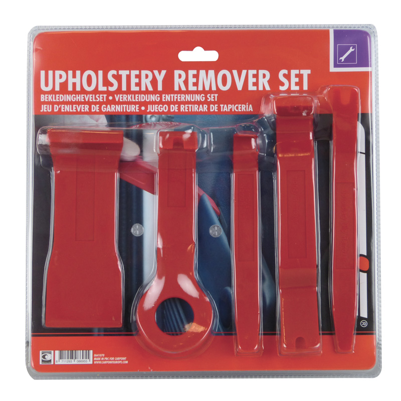 De Carpoint bekledingshevels zijn speciaal gemaakt voor het losmaken en verwijderen van bekleding van de auto. Onderdelen van het interieur zoals dashboard, deurpanelen en dorpels zitten vast met bevestigingsclips, met deze bekledingsvorken kan u het onderdeel makkelijk losmaken. De kunststof hevels zorgen worden geleverd in een set van vijf stuks en bestaan uit verschillende brede, smalle, trek en multifunctionele hevels.