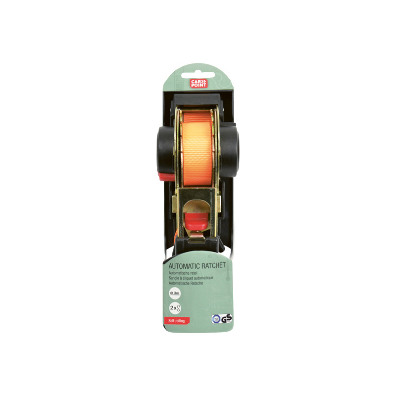 Deze Carpoint automatische spanband met haken is het ideale hulpmiddel bij transport of opslag van goederen. Met deze bagagebinder zet u ladingen stevig vast waardoor u voorkomt dat de lading gaat schuiven. Nooit meer last van losse uiteinden door het zelf oprollende mechanisme. De Carpoint spanband heeft een lengte van 3 meter en een breedte van 25mm. De spanband is maximaal belastbaar tot 325 kilogram. De S- vormige haken zijn voorzien van een coating waardoor beschadigingen worden voorkomen. De automatische spanband wordt per stuk geleverd en heeft het TÜV/GS keurmerk.