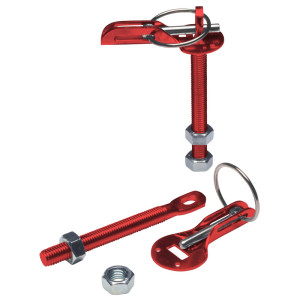 Set universele Racing Plus Flush motorkaphaken/-pins - zwart + rood aluminium pins