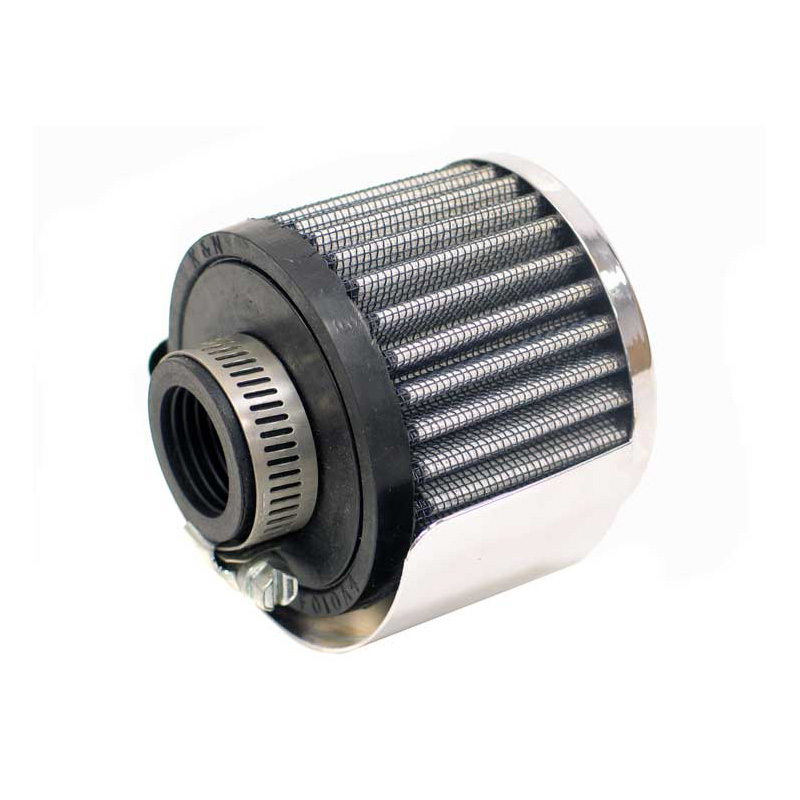 K&N ontluchtingsfilter 25mm met schild Motoren hebben benzine nodig en geen residu. Daarom zijn ontluchtingsfilters de betere oplossing. Vooral bij races en in combinatie met open K&N luchtfilters. Carter-ontluchtingsfilters hebben een metalen pijpje. Design uit één stuk voor competitie doeleinden. Het aansluitingspijpje voor de carter zit vast gelast aan de metalen onderkant. Een ontwerp uit één stuk met rubber of chromen kap. Filters met een tapeinde op het deksel kunnen op een andere plek gemonteerd worden, daarvoor zijn slangen en klemmen noodzakelijk. De carter-ontluchtingsfilters kunnen in het rubber van het kleppendeksel geperst worden. Elke onderkant is verchroomd. De aansluitpijpjes zijn van zink. Montage: Je kan de K&N Carter-ontluchtingsfilters eenvoudig monteren in de auto en net zo gemakkelijk er ook weer af halen. Op YouTube kan je talloze instructievideo’s vinden om je te helpen. Mocht je toch hulp willen hebben bij het installeren van jouw K&N Carterontluchtingsfilters dan kan je altijd naar jouw AutoStyle dealer gaan.