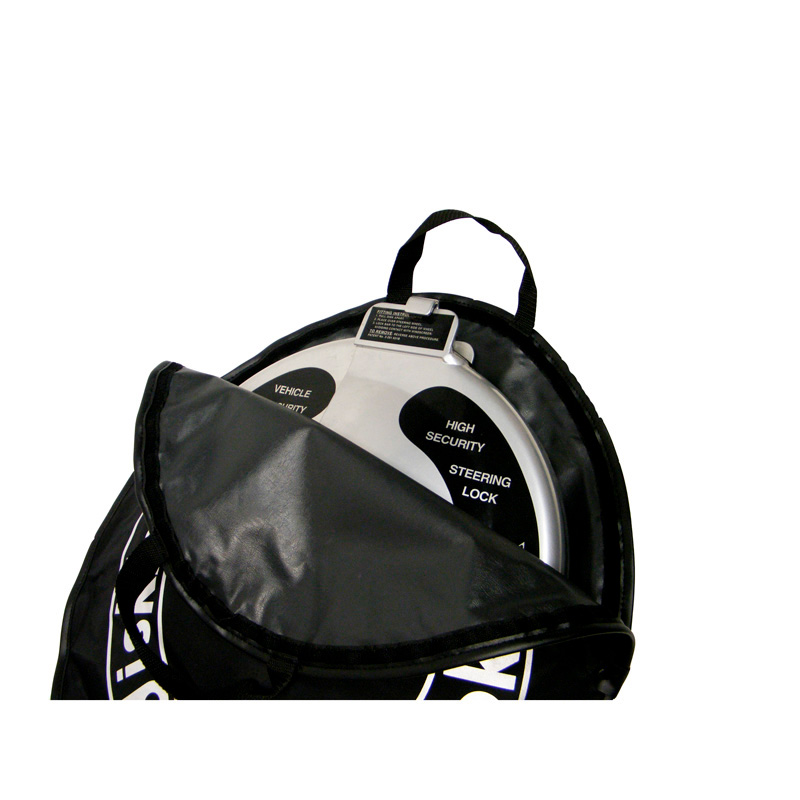 Nylon opberghoes voor je Disklok stuurslot. Deze handige opberghoes beschermt je Disklok als deze niet in gebruik is. Het heeft een klittenbandsluiting voor openen en sluiten en handige klittenband aan de achterkant om het vast te zetten, zodat het niet wegglijdt in de auto. De hengsels zorgen ervoor dat je de tas snel en gemakkelijk kunt openen en zijn praktisch voor transport.