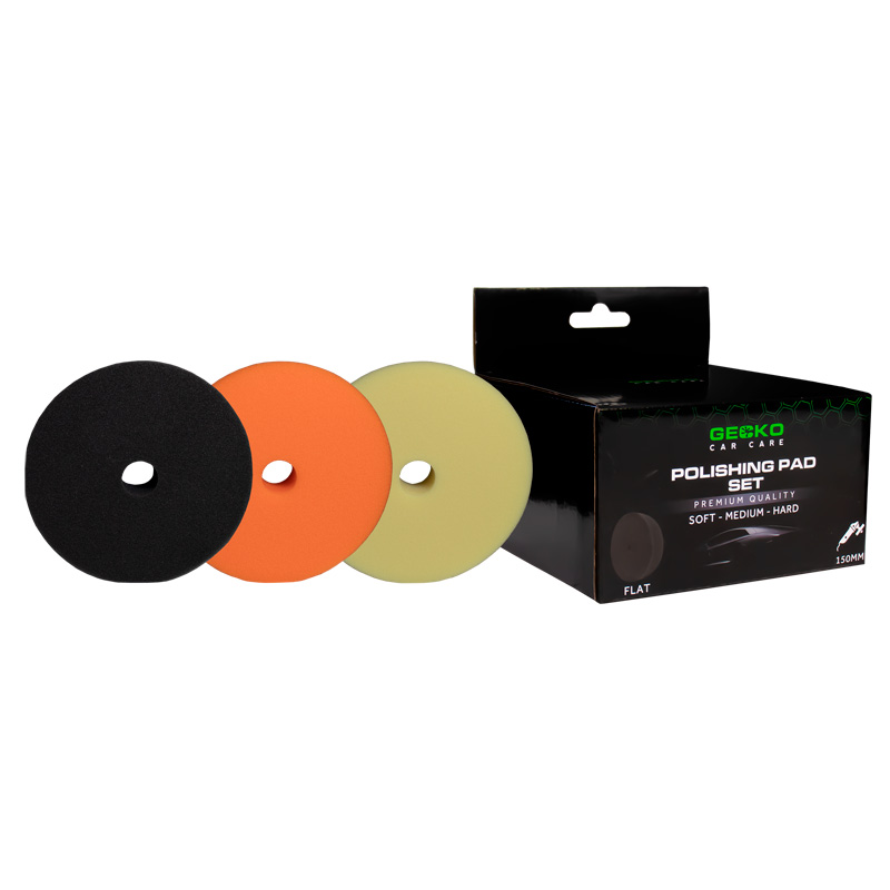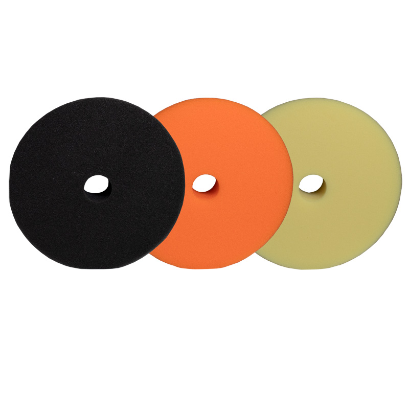 Deze set bevat drie polijstpads van 150 mm in verschillende kleuren, elk bedoeld voor grof, middelmatig en fijn polijstwerk. Ze passen op een steunplaat van 125 mm. De set bestaat uit pads in de kleuren zwart (zacht), oranje (medium) en geel (hard). Deze bijzondere pads hebben een centraal gat voor koeling, evenals voor het afvoeren van trillingen en warmte. Ze zijn geschikt voor zowel excentrische als roterende polijstmachines.