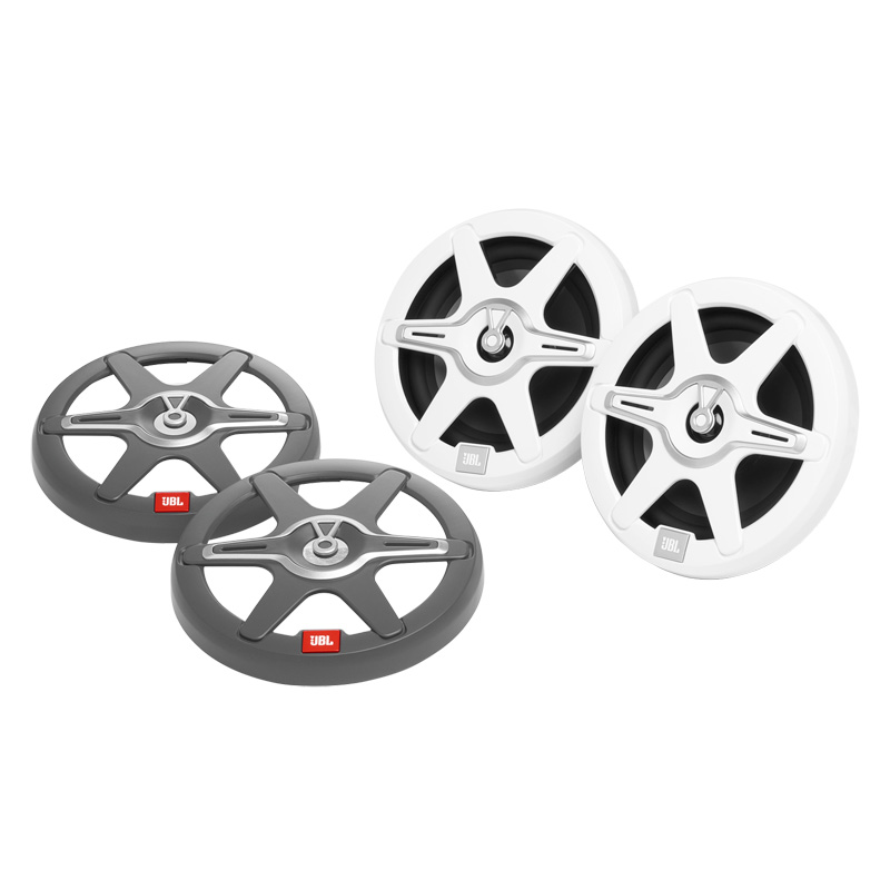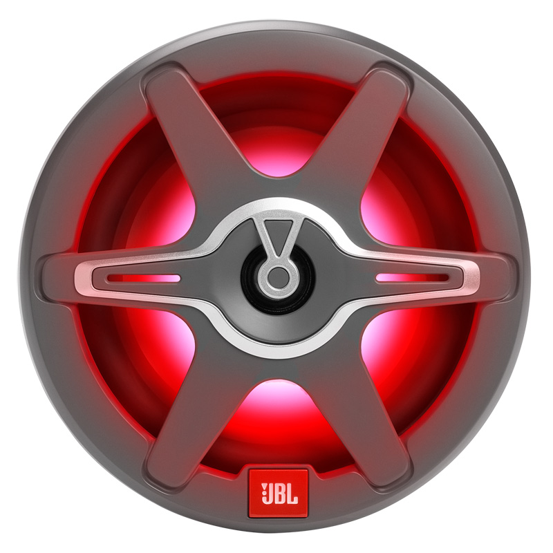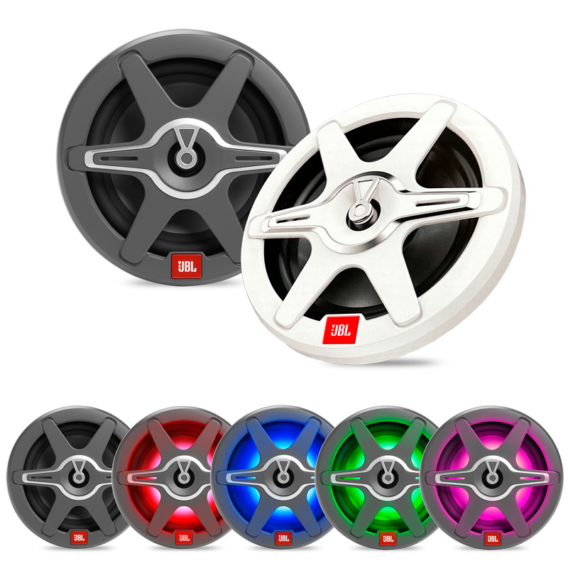 JBL voegt een persoonlijk tintje toe met de keuze tussen glanzend witte en matte grijze UV-bestendige roosters, zodat je de perfecte match kunt vinden voor je boot, golfkar of ATV. De ingebouwde LED-verlichting van de luidsprekers biedt zeven kleuropties, direct uit de doos, en met een optionele lichtregelaar heb je zelfs nog meer mogelijkheden.