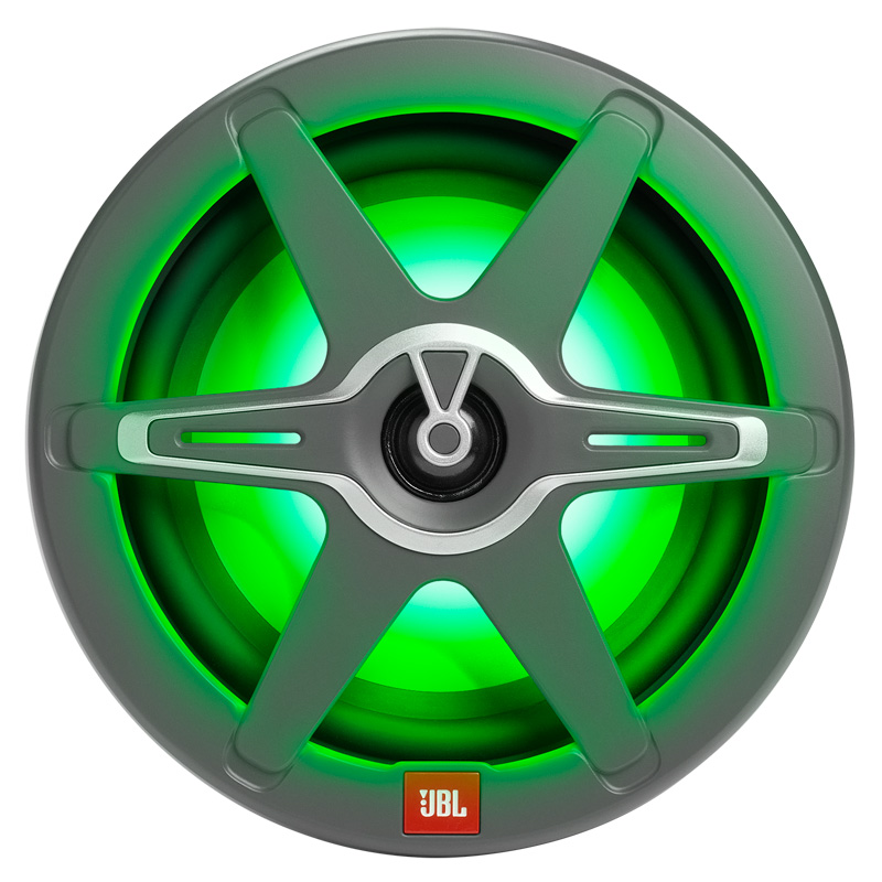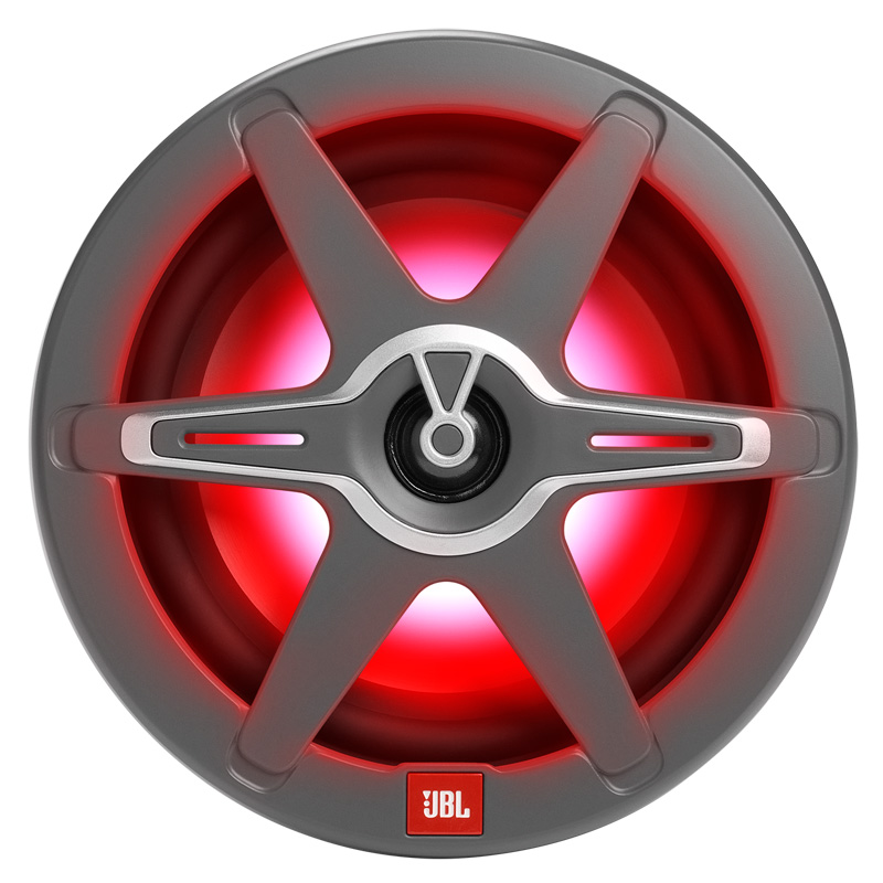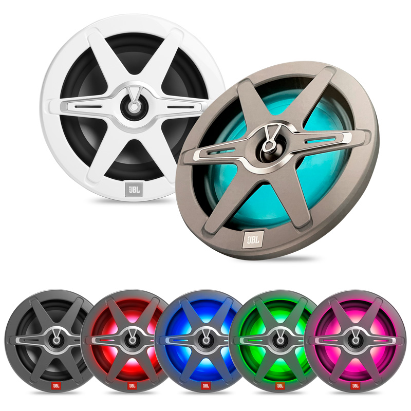JBL voegt een persoonlijk tintje toe met de keuze tussen glanzend witte en matte grijze UV-bestendige roosters, zodat je de perfecte match kunt vinden voor je boot, golfkar of ATV. De ingebouwde LED-verlichting van de luidsprekers biedt zeven kleuropties, direct uit de doos, en met een optionele lichtregelaar heb je zelfs nog meer mogelijkheden.