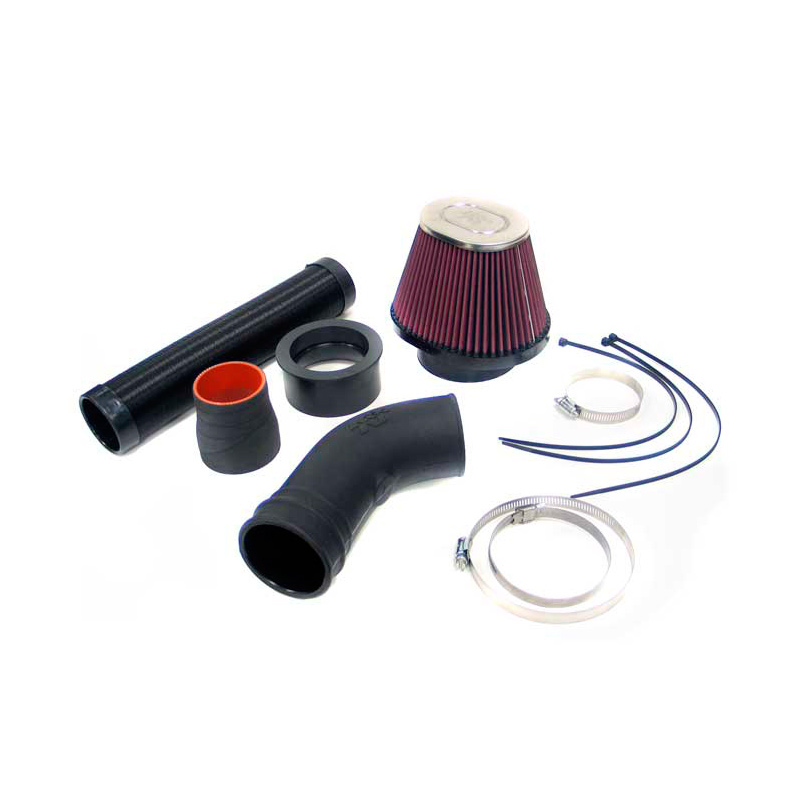 K&N 57i kit. Een blik onder de motorkap van moderne auto’s maakt al snel duidelijk dat de luchttoevoer wordt beperkt door onnodige bochten en knikken. Lucht stroomt het beste in een rechte lijn en wordt het liefst niet door het filtermateriaal afgeremd.