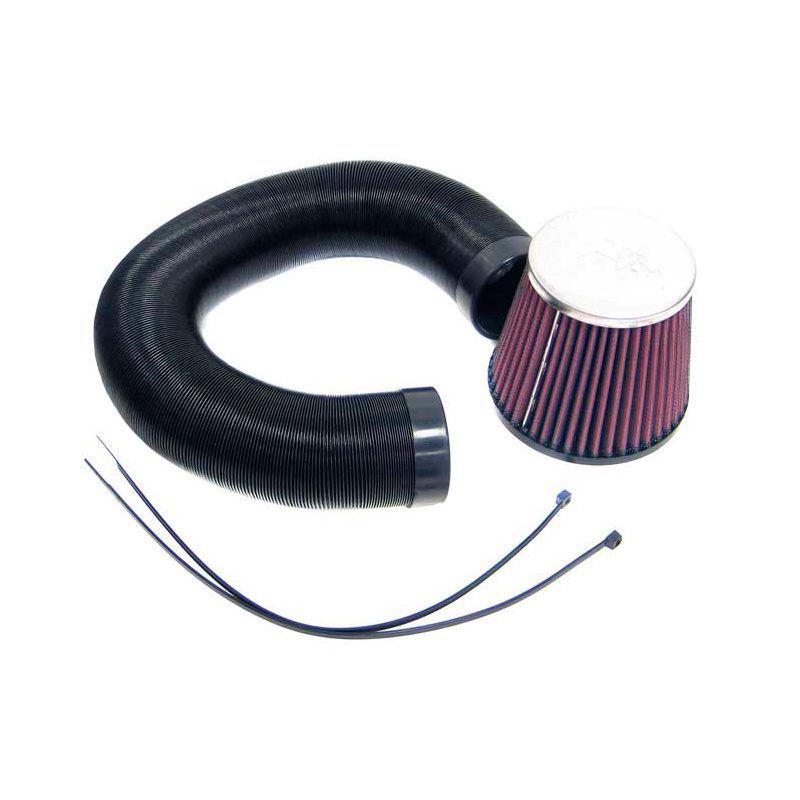 K&N 57i kit. Een blik onder de motorkap van moderne auto’s maakt al snel duidelijk dat de luchttoevoer wordt beperkt door onnodige bochten en knikken. Lucht stroomt het beste in een rechte lijn en wordt het liefst niet door het filtermateriaal afgeremd.