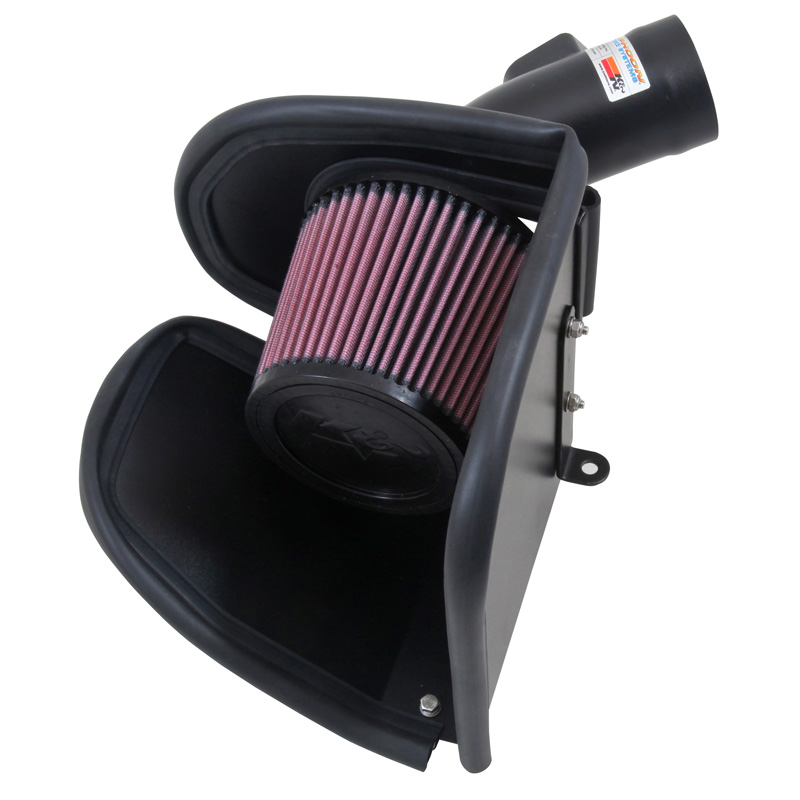K&N Typhoon kit. Een blik onder de motorkap van moderne auto’s maakt al snel duidelijk dat de luchttoevoer wordt beperkt door onnodige bochten en knikken. Lucht stroomt het beste in een rechte lijn en wordt het liefst niet door het filtermateriaal afgeremd.