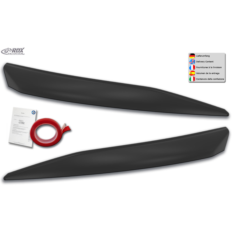 Deze koplampspoilers zijn gemaakt van hoogwaardig ABS/PUR kunststof in OE-kwaliteit. Ze worden geleverd in een zwarte kleur en kunnen meteen worden gemonteerd of eerst worden gelakt in een passende kleur.