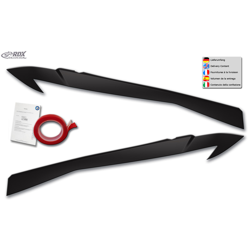 Deze koplampspoilers zijn gemaakt van hoogwaardig ABS/PUR kunststof in OE-kwaliteit. Ze worden geleverd in een zwarte kleur en kunnen meteen worden gemonteerd of eerst worden gelakt in een passende kleur.