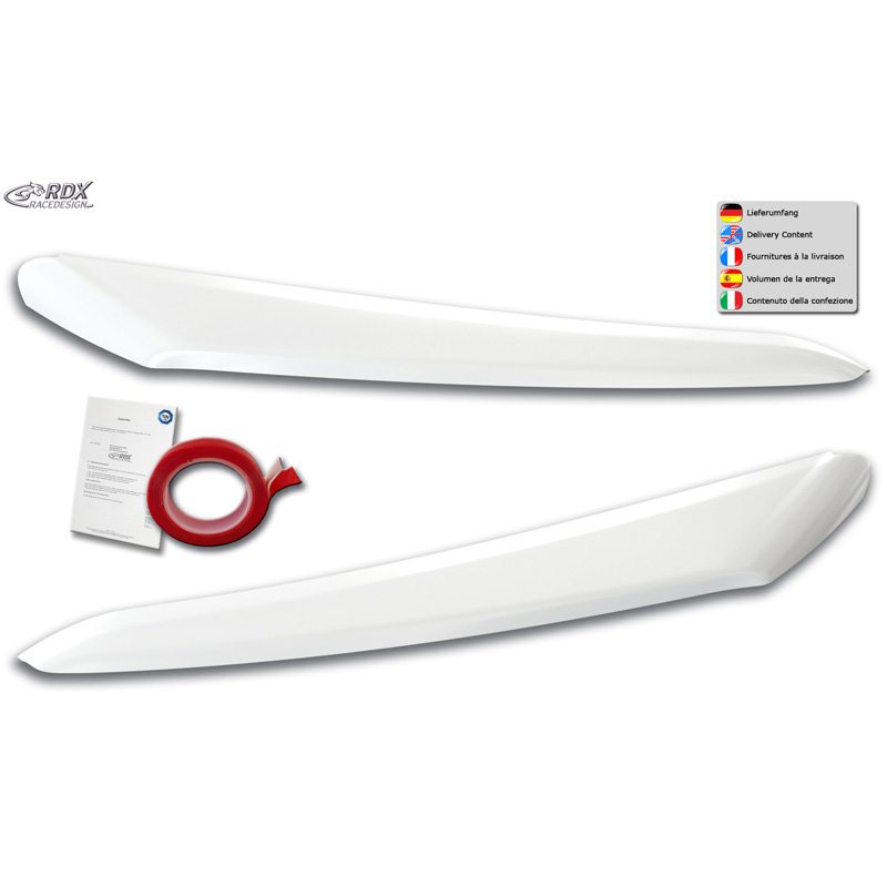 Deze koplampspoilers zijn gemaakt van hoogwaardig ABS/PUR kunststof in OE-kwaliteit. Ze worden geleverd in een glanzend witte kleur en kunnen meteen worden gemonteerd, het lakken van dit onderdeel is mogelijk maar niet nodig.