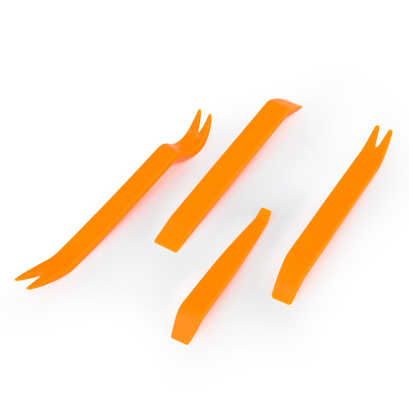 Stel je wilt een accessoire aanbrengen aan jouw auto, bijvoorbeeld een nieuw LED lampje, centrale deurvergrendeling, set nieuwe buitenspiegels, of.... Hoe verwijder je dan snel, eenvoudig en zonder beschadiging het deurpaneel, het kapje van de lampbehuizing etc.? Een vaak toegepaste vorm van gereedschap is een schroevendraaier, echter met de nodige kans op beschadiging. Middels deze 4-delige kunststof gereedschapset heb je altijd het juiste hulpmiddel bij de hand en voorkom je schade aan de kostbare onderdelen van jouw auto.