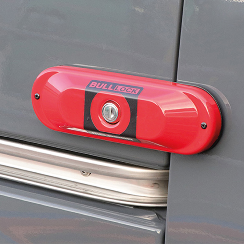 Het Matador Bull Lock beveiligt achtterdeuren van bedrijfswagens tegen inbrekers. De bracket kan eenvoudig worden bevestigd onder de borgplaat van de deur. Er hoeft niet geboord te worden ! De bracket en de Bull-Lock Oval zijn gemaakt van roestvrij staal, afgewerkt met een poedercoating. Bull-Lock Oval heeft een sterke rode plastic behuizing. Wordt standaard geleverd met een cilinderslot met 2 sleutels. Levering met bracket. Zonder bracket kan het Bull-Lock Oval slot niet bevestigd worden. De bracket wordt bevestigd onder de slotplaat, sluit de deur en bevestig de Bull-Lock Oval hierop. De deur is nu veilig afgesloten.