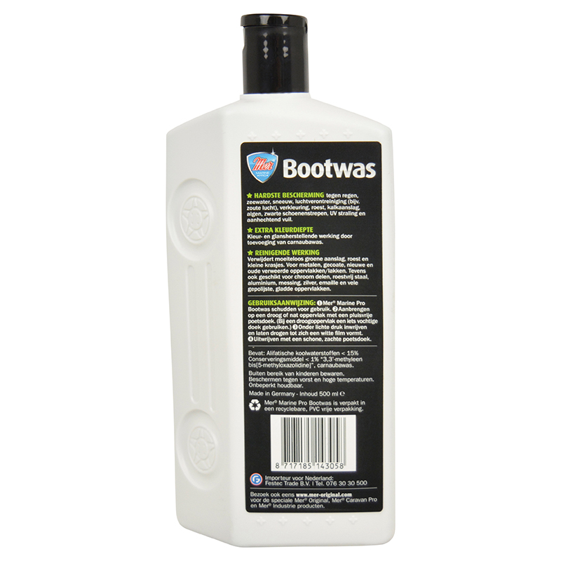 Professionele bootwas voor metalen-, gecoate- en gelakte oppervlakken. Biedt optimale bescherming tegen regen, zeewater, verkleuring, UV straling, aanhechtend vuil, etc. Heeft een kleur- en glansherstellende werking door toevoeging van carnauba wax. 500ml.