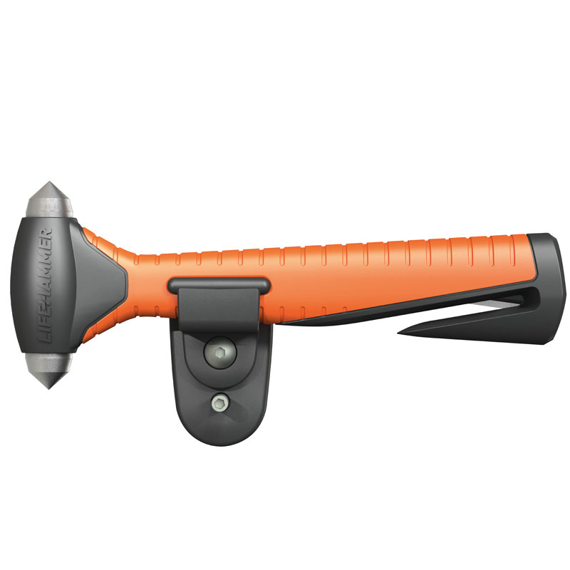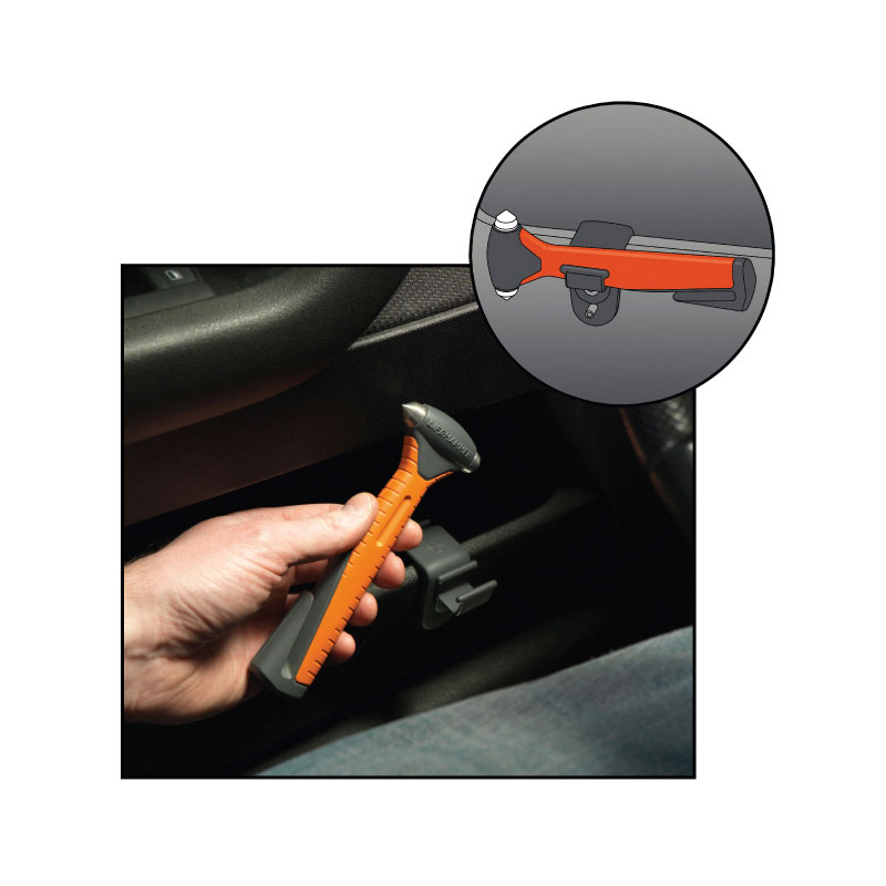 Dubbele hamer van koolstofstaal om ramen in enkele seconden te verbrijzelen. Ingebouwd mes voor het doorsnijden van gordels. Dankzij de antislip grip en conisch gevormde handgreep zal hij niet uit je hand glijden. Het meegeleverde QUICK CLICK-systeem zor