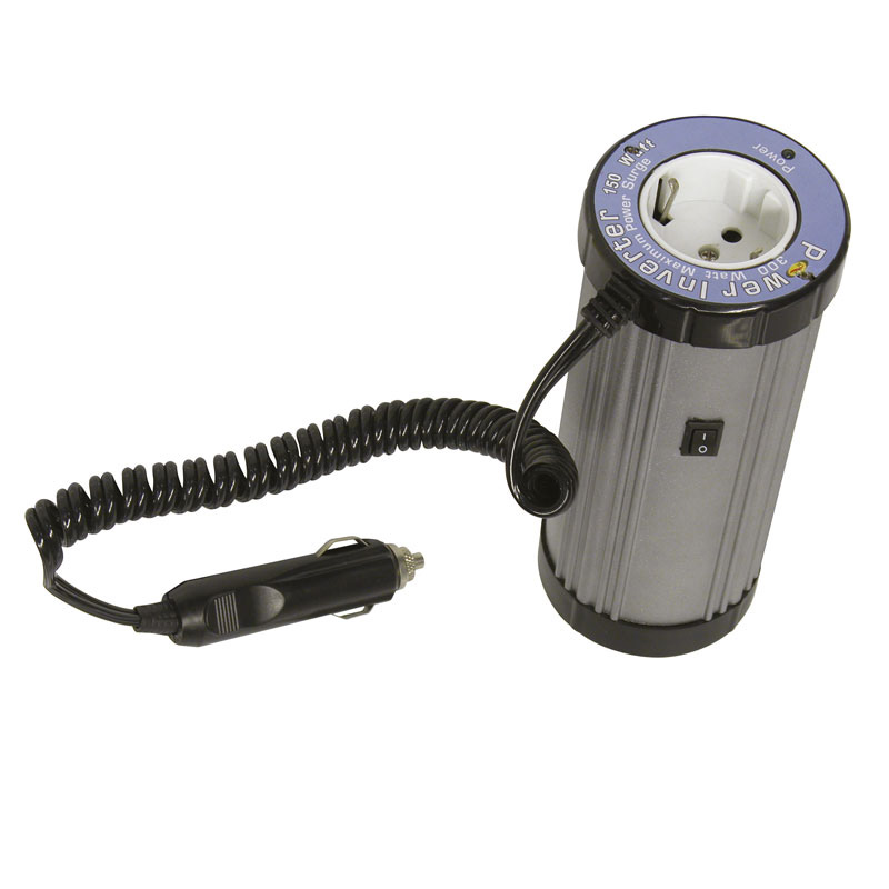 Input: 12 V. Output: 150-300W, 50-60 Hz, 220 ~ 240 V. Beveiliging: te lage ingangsspanning, overbelasting, oververhitting. Past in blikjeshouder.