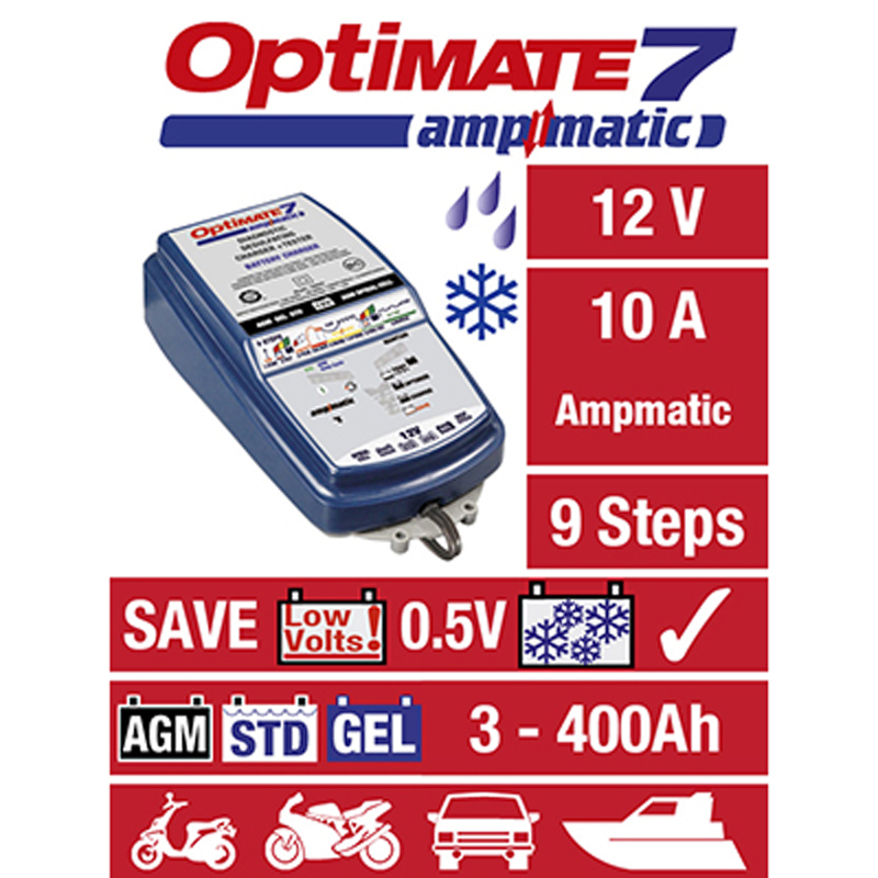 De OptiMate 7 herstelt accu’s die door andere laders niet meer te redden zijn, want de OptiMate 7 ziet het verschil tussen een lege accu die moet worden geladen en een volledig ontladen verzwavelde accu die moet worden hersteld. Perfect voor maandenlang onderhoud van elke 12V-loodzuuraccu, zoals deepcycleaccu’s, accu’s voor auto’s, pleziervaartuigen, motorfietsen, …