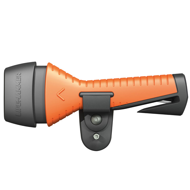 Noodhamer met ultra-harde keramische kop. Door de noodhamer tegen het raam aan te duwen, breekt het raam eenvoudig en zal automatisch herladen. Ingebouwd mes voor het doorsnijden van gordels. Het meegeleverde QUICK CLICK-systeem zorgt ervoor dat de noodhamer in elke gewenste positie gemonteerd kan worden.