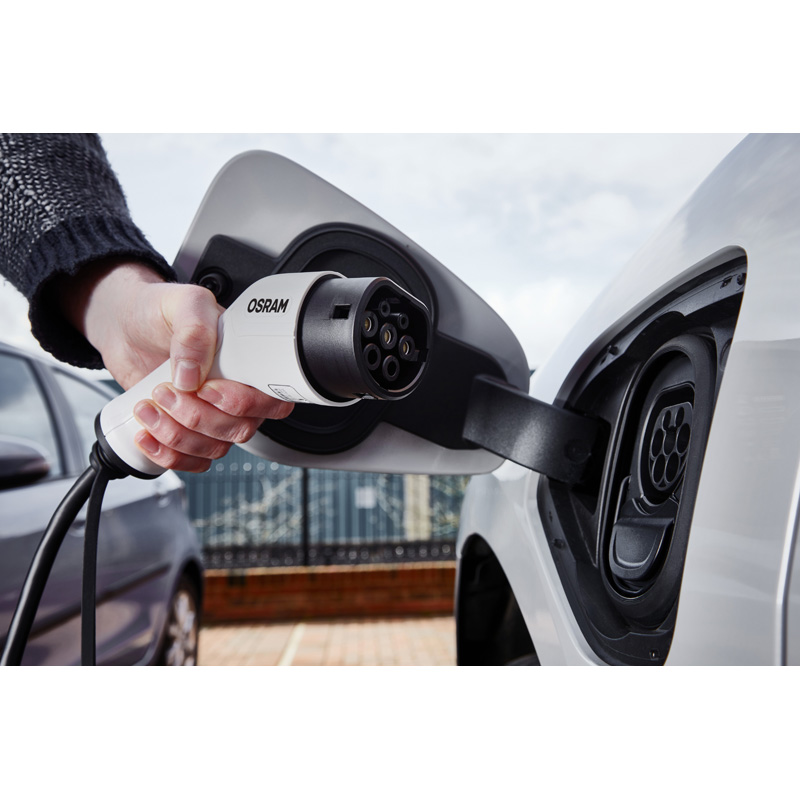 Ontdek de wereld van elektrisch rijden met OSRAM. Laad uw volledig elektrische of plug-in hybride voertuig type 2 op bij elk 16 A laadstation (1 fase) met een type 2 stekker. De laadkabel is uitgerust met ergonomische handgrepen voor optimale bediening en heeft een kabellengte van 5 meter. Het is geschikt voor gebruik bij openbare laadstations en thuis. Bovendien zijn de oplaadkabels voorzien van stofbeschermingskappen en getest op waterbestendigheid volgens IP65 en schokbestendigheid volgens IK10. Ook in aangesloten toestand zijn de elektrische contactpunten beschermd tegen het binnendringen van stof en spatwater volgens IP65 en IK10. Bij de levering is ook een duurzame, compacte opbergtas inbegrepen om de kabel na het opladen netjes op te bergen. Daarnaast is het product TÜV- en CE-gecertificeerd.