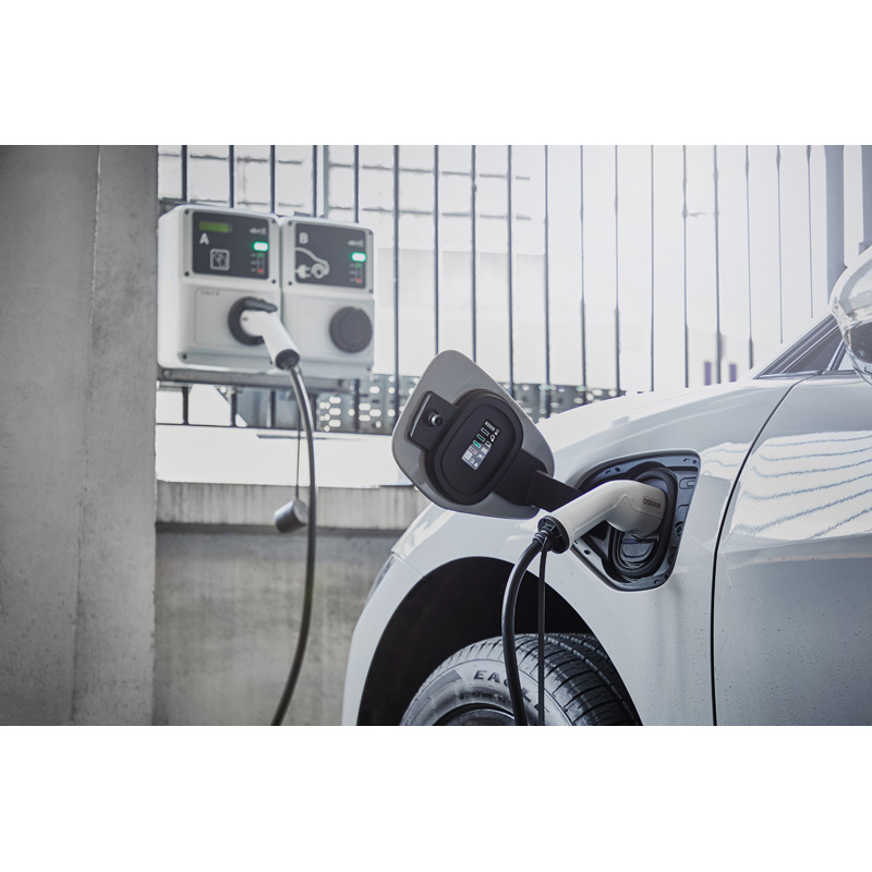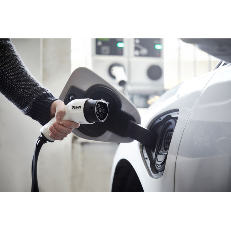 Ontdek de wereld van elektrisch rijden met OSRAM. Laad uw volledig elektrische of plug-in hybride voertuig type 2 op bij elk 32 A laadstation (1 fase) met een type 2 stekker. De laadkabel is uitgerust met ergonomische handgrepen voor optimale bediening en heeft een kabellengte van 5 meter. Het is geschikt voor gebruik bij openbare laadstations en thuis. Bovendien zijn de oplaadkabels voorzien van stofbeschermingskappen en getest op waterbestendigheid volgens IP65 en schokbestendigheid volgens IK10. Ook in aangesloten toestand zijn de elektrische contactpunten beschermd tegen het binnendringen van stof en spatwater volgens IP65 en IK10. Bij de levering is ook een duurzame, compacte opbergtas inbegrepen om de kabel na het opladen netjes op te bergen. Daarnaast is het product TÜV- en CE-gecertificeerd.