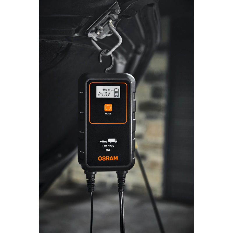 De OSRAM BATTERYcharger 908 is een intelligente 4A lader en batterijonderhoudsapparaat voor 6V tot 12V voertuigen zoals motorfietsen en de meeste kleinere voertuigen. Met één druk op de knop start hij een 7-traps laadcyclus voor lithium accu's en een 9-traps laadcyclus voor loodzuur/AGM accu's. Simpelweg aansluiten en de lader zorgt ervoor dat de accu wordt onderhouden: hij schakelt automatisch over naar de modus voor langdurig onderhoud zodra de accu volledig is opgeladen. Voorzien van een digitaal display om het opladen te vereenvoudigen en een groot aantal veiligheidsfuncties zoals beveiliging tegen omgekeerde polariteit en overspanning