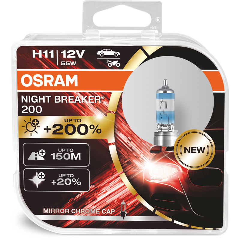 Osram Night Breaker 200 Halogeen lampen - H11 - 12V/60-55W - set à 2 stuks
