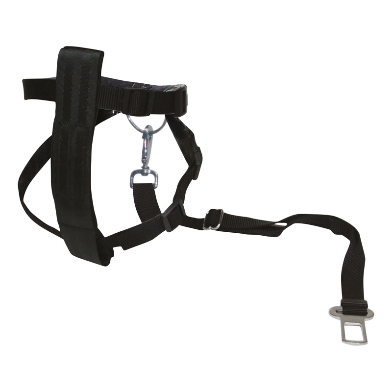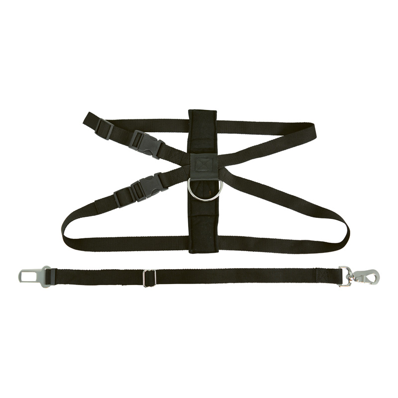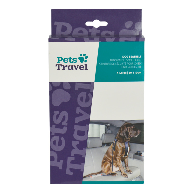 Neem u hond veilig mee tijdens een rit in de auto. Tuigje geschikt voor borstomvang van 80-110 cm. Stevige karabijnhaak die aan het tuig van de hond kan worden vast gemaakt en gesp om vast te klikken in de sluiting van de autogordel. Instelbare lengte van 35 tot 62 cm.