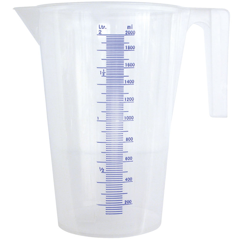 Doorzichtig plastic. Met schaalverdeling. 2 liter.