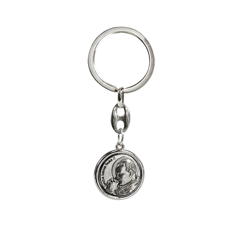 RVS sleutelhanger - 'St.Christopher' & 'Johannes Paulus II' (Zilverkleurig)