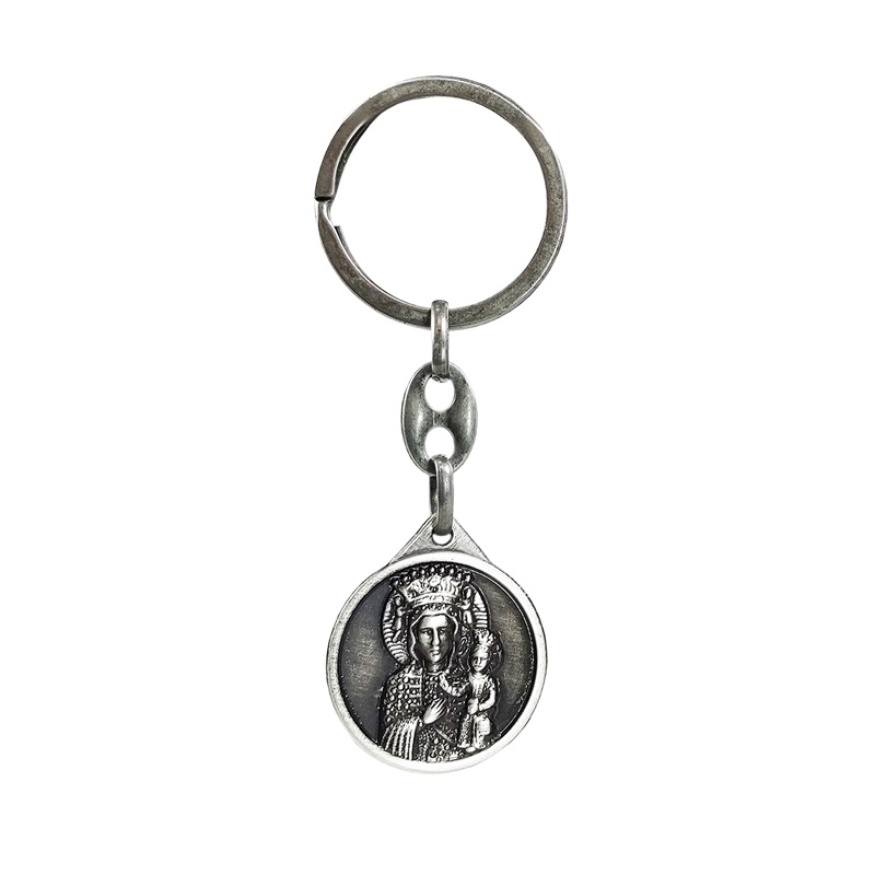 RVS Sleutelhanger - 'St.Christopher' & 'Madonna of Częstochowa' (Zilverkleurig)