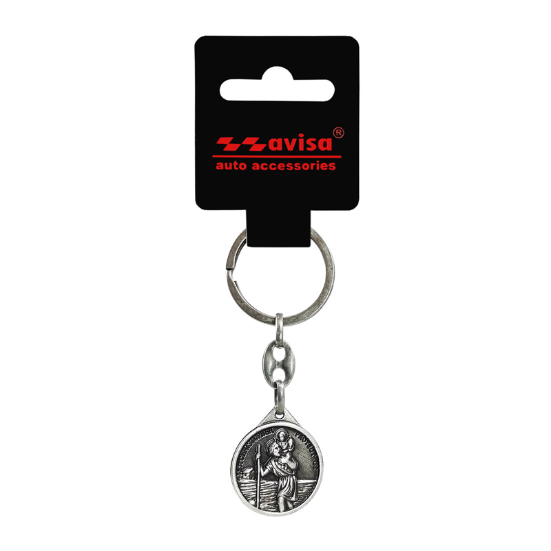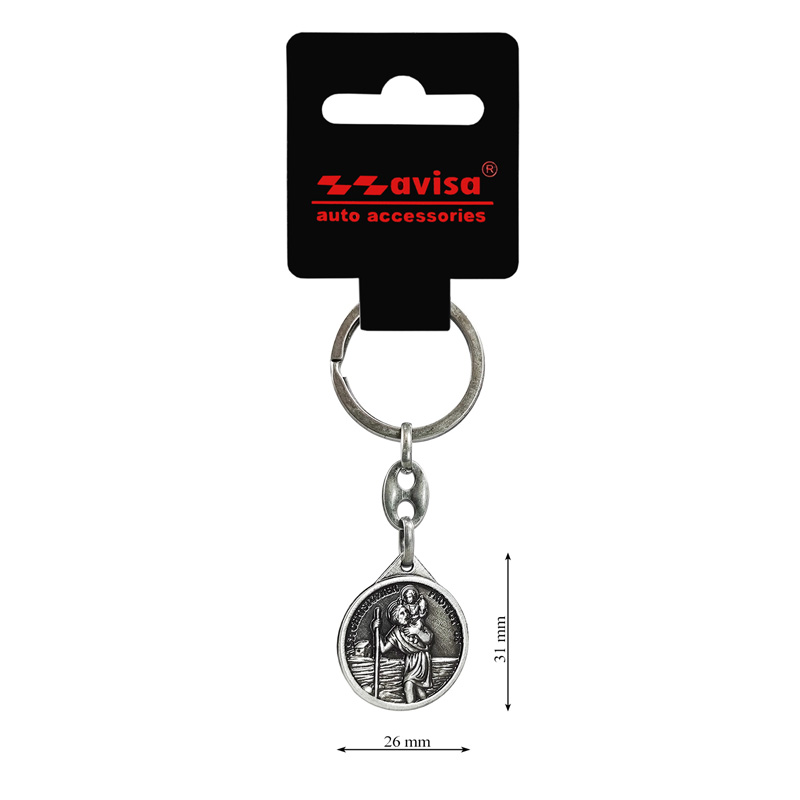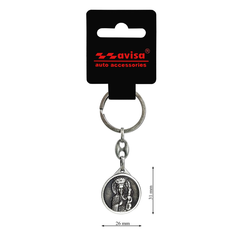Sleutelhanger van RVS en leer - 'St.Christopher' & 'Madonna of Częstochowa' (Zilverkleurig) 2,6 x 3,1cm