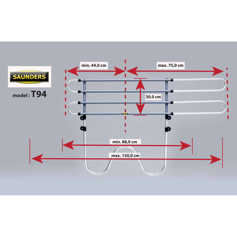 Het rek is volledig verstelbaar in zowel breedte als hoogte. Het W-frame heeft een minimale hoogte van 48cm, maar middels de traploos instelbare poten kan het worden ingesteld tot 80cm. Het rek kan na montage eenvoudig verwijderd worden door enkel de gespen te ontgrendelen.