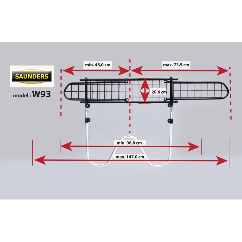 Het Saunders MPV Semi-Fit hondenrek wordt eenvoudig gemonteerd op de hoofdsteunen van de achterbank van uw auto middels snelspan-gespen en benodigd derhalve geen andere montagepunten. Het rek is voorzien van een 'W' design frame dat onder een hoek geplaatst wordt tegen de achterzijde van de achterbank. Hierdoor wordt het verlies aan bagageruimte tot een minimum beperkt.