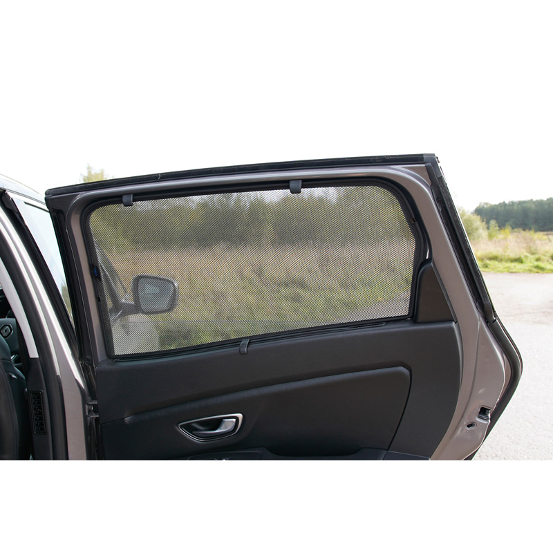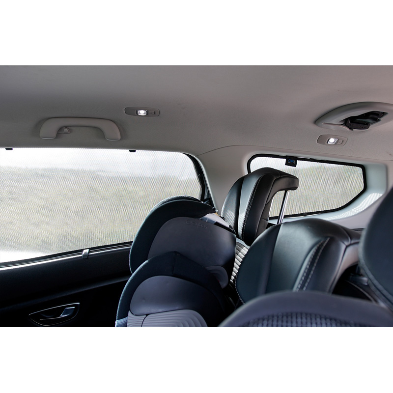 Set pasklare Car Shades zonnegordijnen, perfect tijdens het mooie zomerweer, lange vakantieritten en vooral voor jouw passagiers. De zonneschermen houden de felle zon buiten en door de speciaal geweven doekstructuur geven ze jouw auto een mooi discreet uiterlijk, jouw ramen krijgen de look van geblindeerde ruiten. Je klikt de Car Shades simpel tussen jouw raamstijlen en haalt ze net zo makkelijk weer weg.