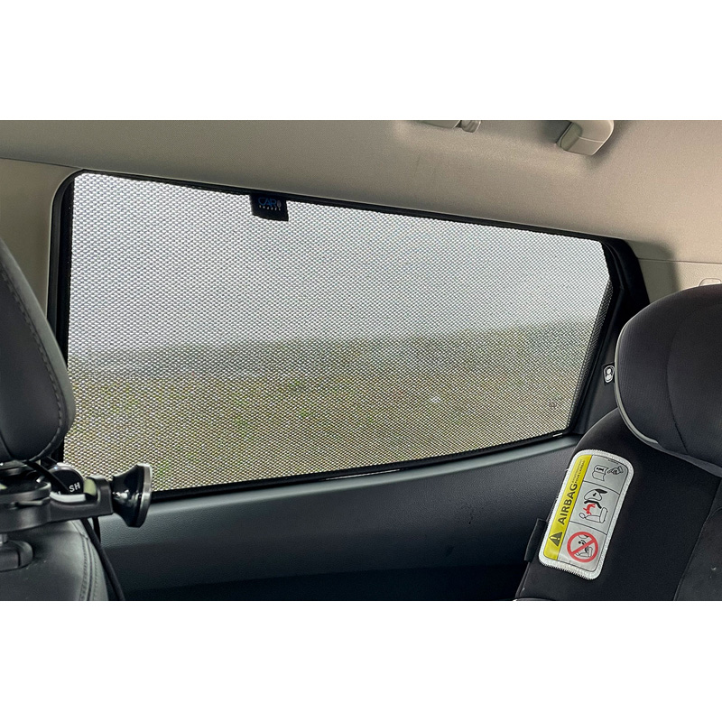 Set pasklare Car Shades zonnegordijnen, perfect tijdens het mooie zomerweer, lange vakantieritten en vooral voor jouw passagiers. De zonneschermen houden de felle zon buiten en door de speciaal geweven doekstructuur geven ze jouw auto een mooi discreet uiterlijk, jouw ramen krijgen de look van geblindeerde ruiten. Je klikt de Car Shades simpel tussen jouw raamstijlen en haalt ze net zo makkelijk weer weg.