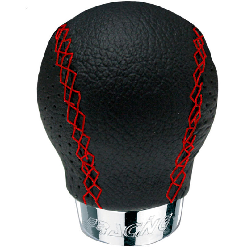 Simoni Racing universele pookknop 'Set' zwart leder + rode stiksels