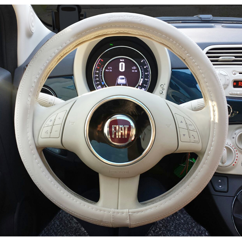 Simoni Racing Stuurwielhoes 500 - 37-39cm - Beige Kunstleder o.a. speciaal passend voor de Fiat 500 interieurs!