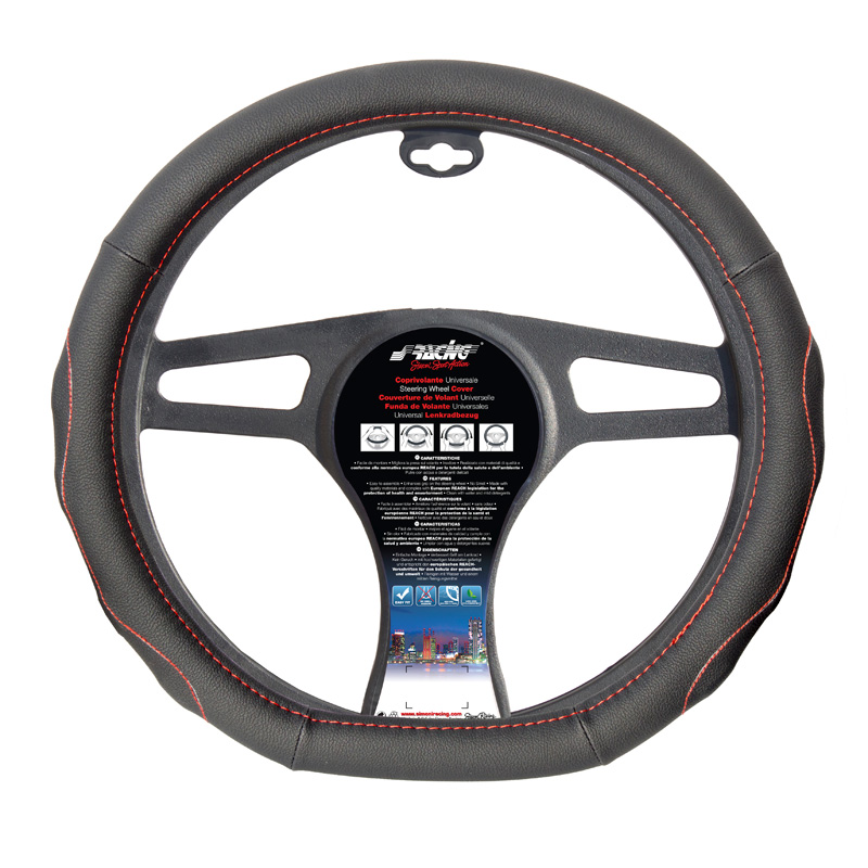 Simoni Racing Stuurwielhoes Compe 'Flat Bottom' - 37-39cm - Zwart + Rode stiksels - Speciaal voor sturen met vlakke onderzijde