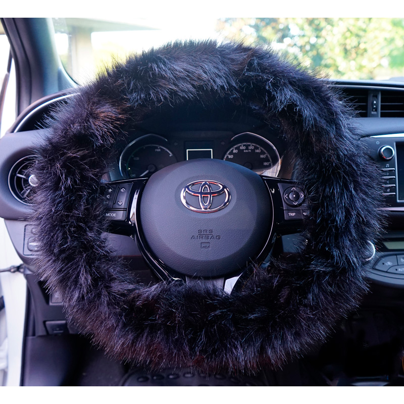 Simoni Racing Stuurwielhoes Fluffy Fur - 37-39cm - Zwart - Zacht - Trendy - Warm - Geurloos - Easy-fit